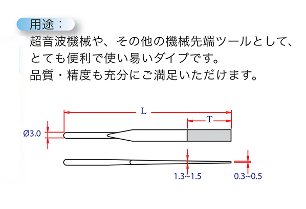 | 型番 | 粒度 | シャンク径(mm) | 形状サイズ(mm) | ダイヤ部長さ(mm) | 全長(mm) | 単価(税別) | 数量 |