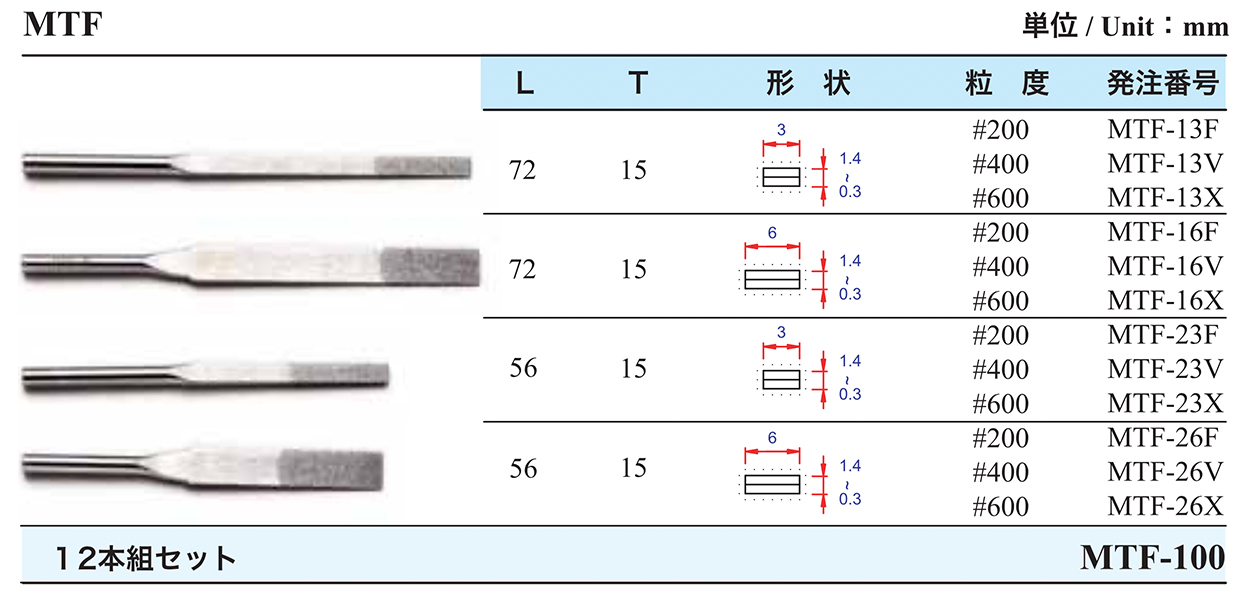 | MTF-13X | #600 | 3 | 3×1.4〜0.3 | 15 | 72 | ¥1,580 税別 | |