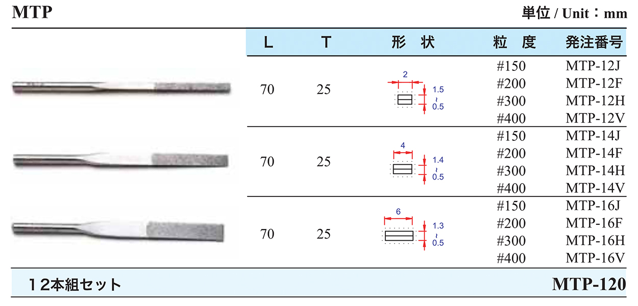 | MTP-14V | #400 | 3 | 4×1.4〜0.5 | 25 | 70 | ¥1,400 税別 | |